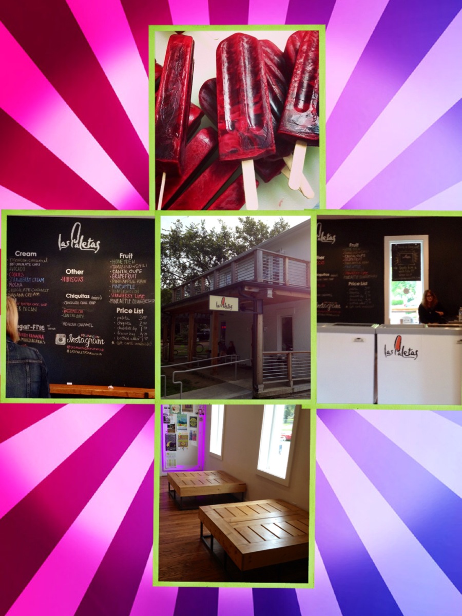 Ok, this is our new obsession, Las Paletas. Paletas is a frozen treat, similar to an ice pop, made with ripe fresh fruit, vegetables, and other ingredients including grains, nuts, flowers, and herbs from community gardens. I would call it a gourmet Popsicle.