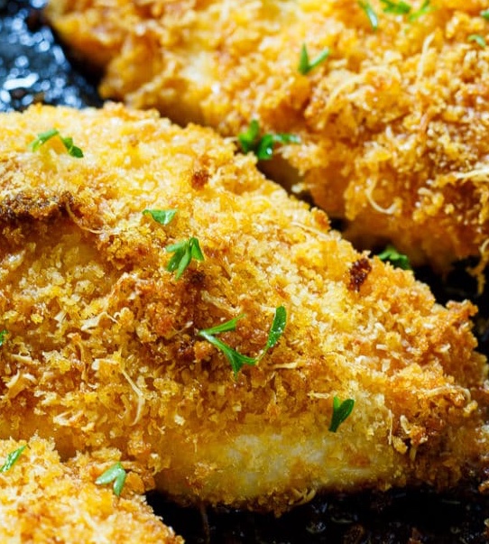 In a shallow bowl pour about half of your Italian bread crumbs and about 2-3 oz. of your grated Parmesan-Romano cheese and mix together. Take out chicken from marinade one piece at a time and coat well with bread crumbs and cheese mixture. Place chicken in baking dish, repeat until all chicken is coated. Cover with aluminum foil and bake for 20 minutes. Uncover the chicken and bake for 5 more minutes. Pull chicken out of oven and let cool for 5 minutes and serve.
