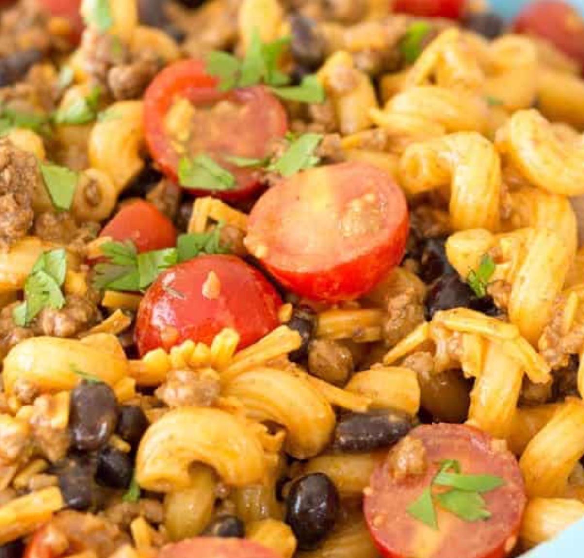 I enjoy pasta salad anytime of the year so when I saw this recipe for a quick easy taco pasta salad I couldn’t resist. It’s so yummy, I like to make a grilled cheese quesadilla to serve with it for a great meal. I sometimes substitute the black beans and use corn and even put some avocado in. I hope you will give it a try.
