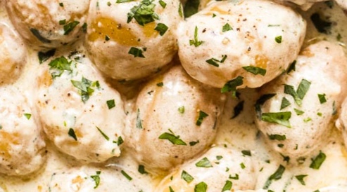 Stir in the cooked potatoes until coated in cream sauce and then add fresh chopped parsley and serve.