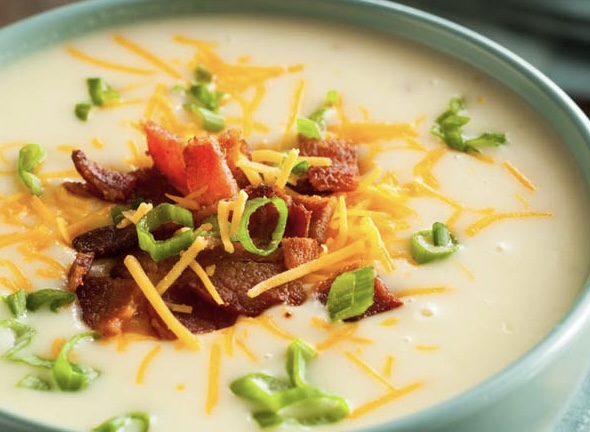 Garnish with bacon, cheese and green onions, enjoy!